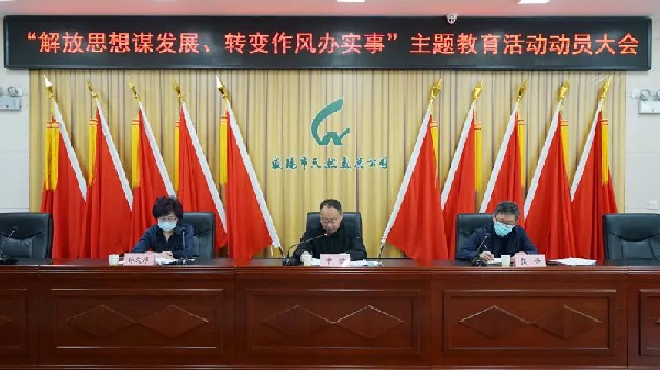 会上,党委委员、副总经理孙文萍同志宣读《咸阳市天然气总公司“解放思想谋发展、转变作风办实事”主题教育活动实施方案》;党委委员、工会主席岳峰同志传达夏晓中书记在全市“解放思想谋发展、转变作风办实事”主题教育活动动员大会上的讲话精神。